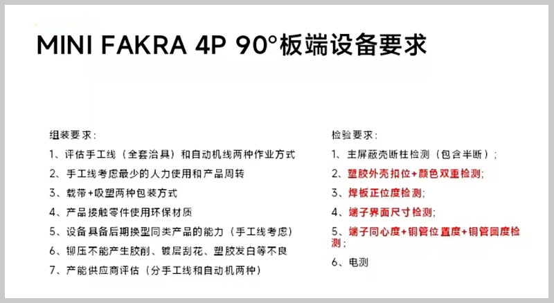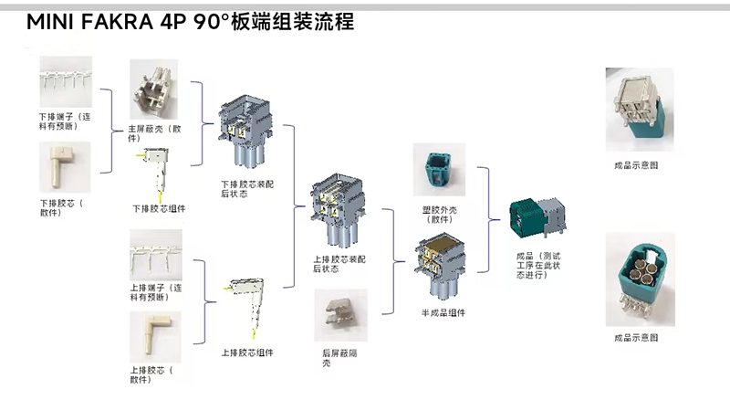 MINI FAKRA 4P 90°板端连接器自动组装设备生产过程